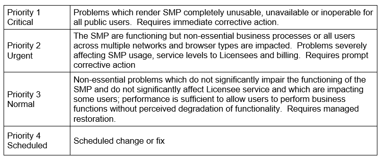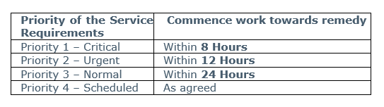 - Our service levels operate according to an established grading system for the prioritisation of issues. This structure is set out in the tables below: