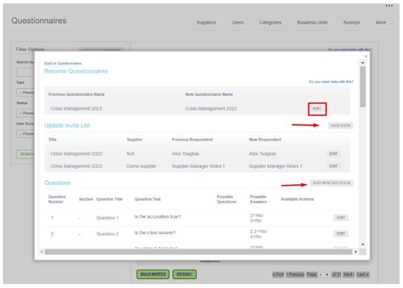 - Update the invite list by adding users or editing the ones that have already received the questionnaire